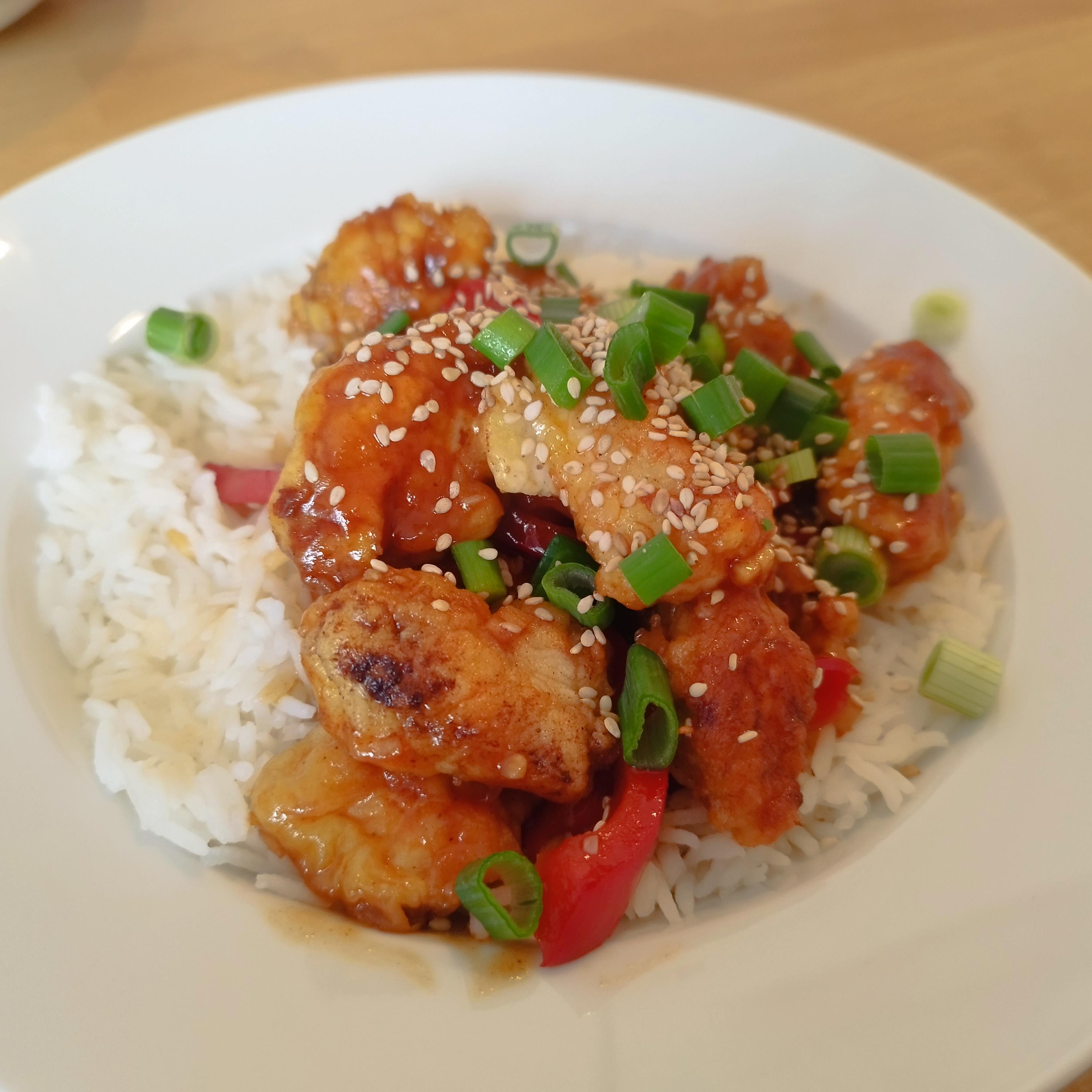 Gib das HĂ€hnchen zurĂŒck in die Panne und wende es in der Sauce, bis es vollstĂ€ndig bedeckt ist. 1-2 Minuten weitergaren.